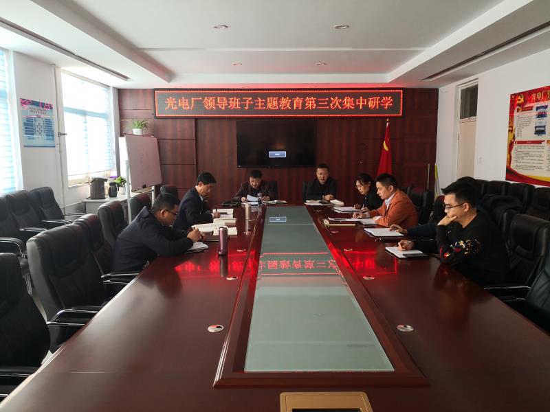 11月19日下午,光电厂领导班子召开“不忘初心、牢记使命”主题教育第三次集中学习研讨会。班子成员围绕党的政治建设、全面从严治党、理想信念等8个内容,联系光电厂工作实际,联系个人工作、思想实际,谈认识、讲体会、摆问题、找差距。研学会由党总支书记张志遥主持,厂长赵俊奇、全体党总支委员、党支部书记和党员代表参加研讨学习。