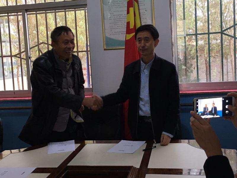 在捐赠仪式上,我厂张书记、郭副厂长分别和东秀庄乡联校校长李晋城、学校扶贫工作队队长李琪、驻后五王城村第一书记何汉先签订了捐赠协议。