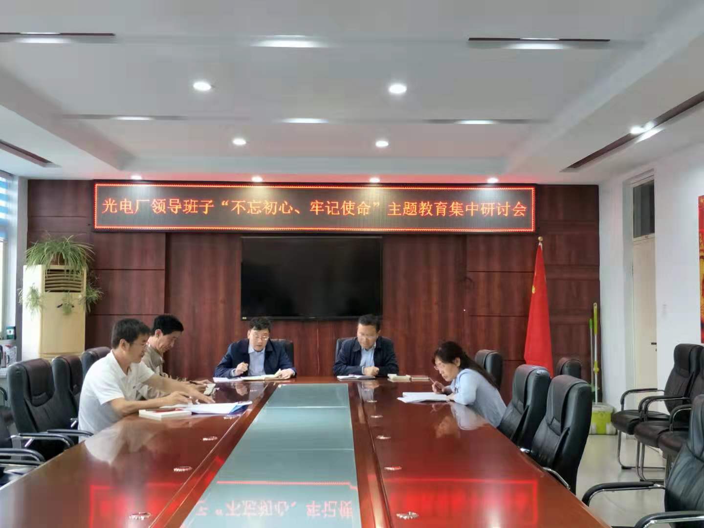 9月20日下午,光电厂领导班子开展“不忘初心、牢记使命”主题教育集中研讨学习,围绕习近平总书记在“不忘初心、牢记使命”主题教育工作会议上的重要讲话精神和中央、校党委有关文件精神,通过进一步学习、研讨和交流,进一步深化认识,切实把思想和行动统一到党中央重大决策部署上来,确保主题教育取得扎实成效。厂党总支书记、主题教育领导小组组长张志遥主持会议并讲话,厂长赵俊奇、副厂长郭雁文等成员结合分管部门的工作实际,谈思想认识、谈工作打算。