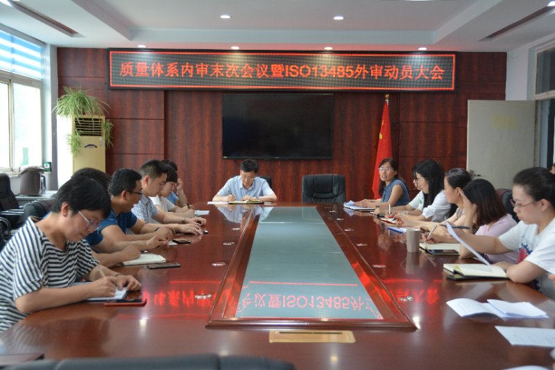 6月17日,我厂(中心)在六层会议室召开2019年质量管理体系内审末次会议暨ISO13485外审动员会议。厂管理者代表阎洁主持会议,党总支书记张志遥出席会议,各部门经理、质量员、内审员参加了会议。